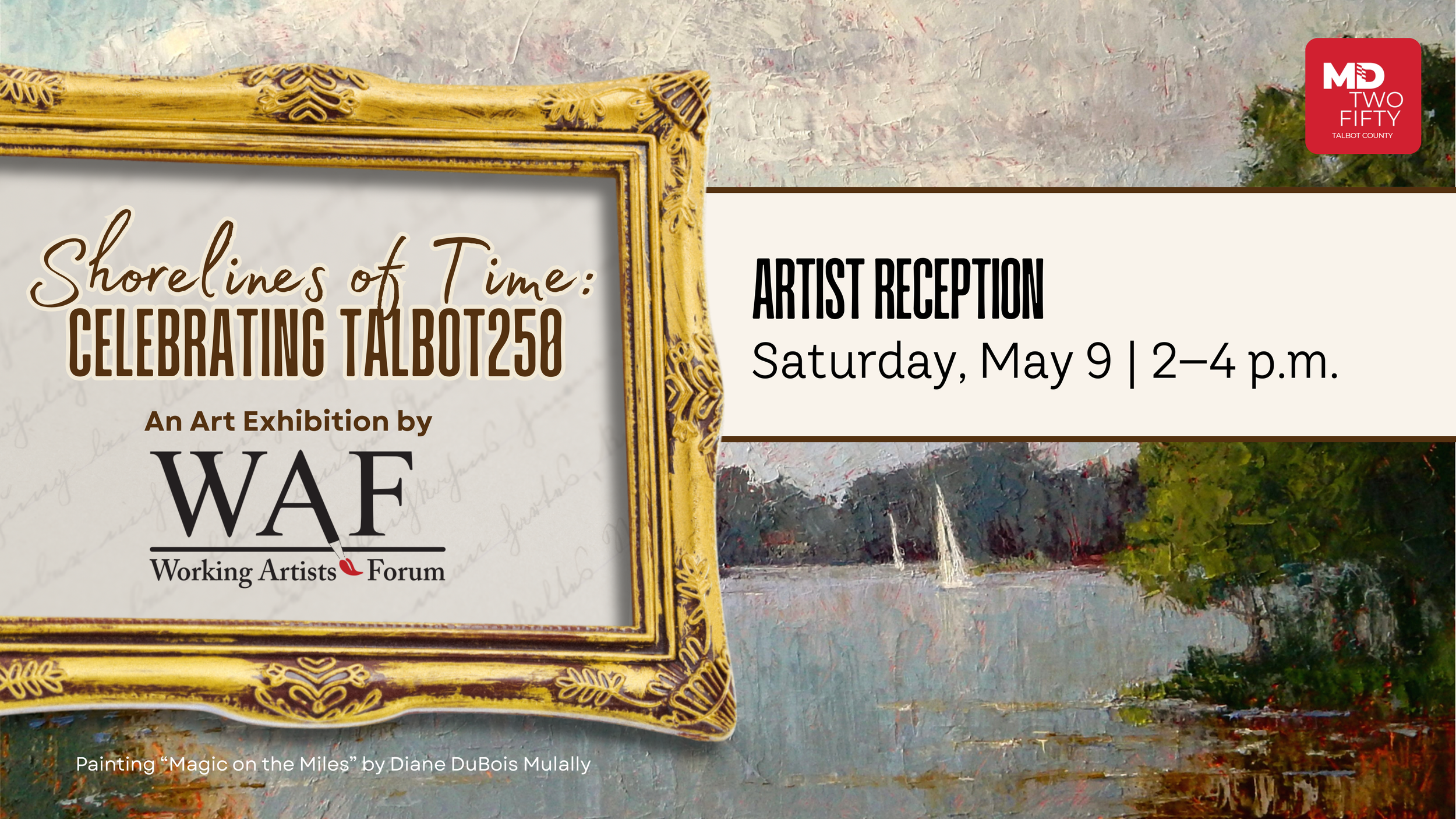 In celebration of Talbot County’s role in the nation’s semiquincentennial, the Working Artists’ Forum presents Shorelines of Time: Celebrating Talbot250, a community-centered art exhibition exploring the landscapes, livelihoods, and stories that define life on Maryland’s Eastern Shore.